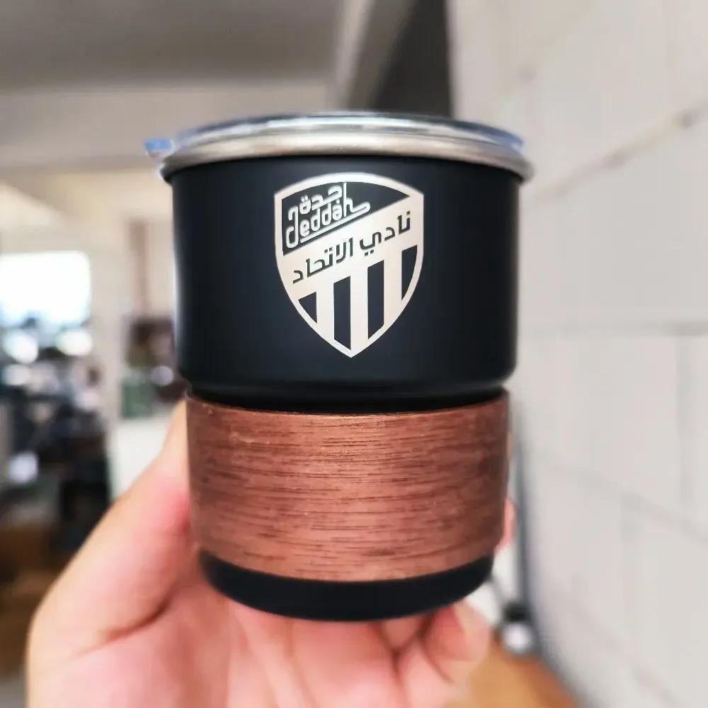 كوب سعودي بتصميم أنيق مستوحى من الهوية الوطنية ليكون رفيقك اليومي في القهوة أو الشاي يتميز بجودته العالية وشكله الكلاسيكي المناسب للاستخدام في المنزل أو المكتب